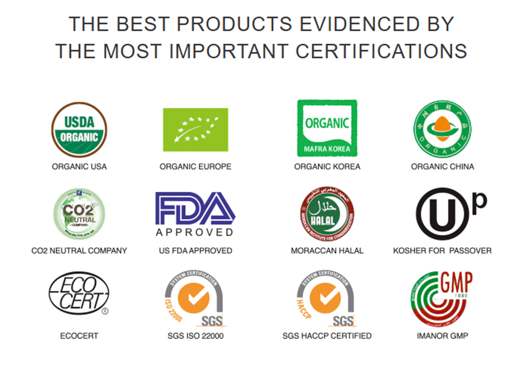 OLIVIE Products produced by OLIVIE PHARMA, a division of ATLAS OLIVE OILS sarl have Multiple Certifications Worldwide, evidencing their supreme quality.The Producer OLIVE PHARMA, a division of ATLAS OLIVE OILS sarl of Morocco, is owned by the Aqallal Family who has more than 130 years of experience in cultivating Organic Olives and producing Olive Oils rich in Olive Polyphenols in the dessert of Morocco.
