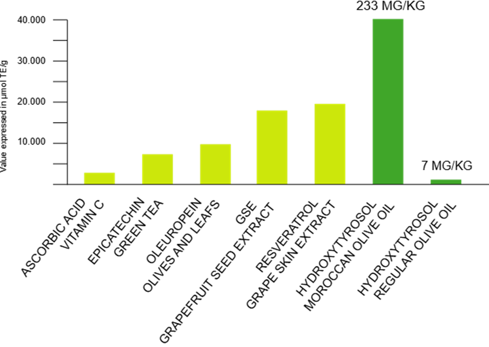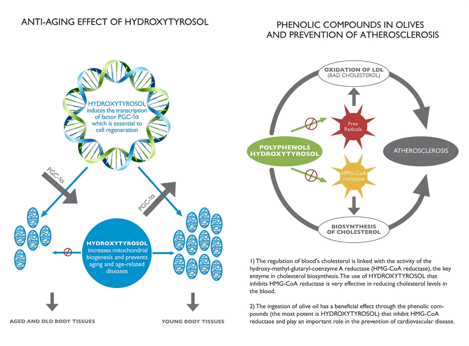 - These Polyphenols especially Hydroxytyrosol from Olives are Super Anti-oxidants that help our body to reduce oxidative stress and protect our body against the attack by free radicals.